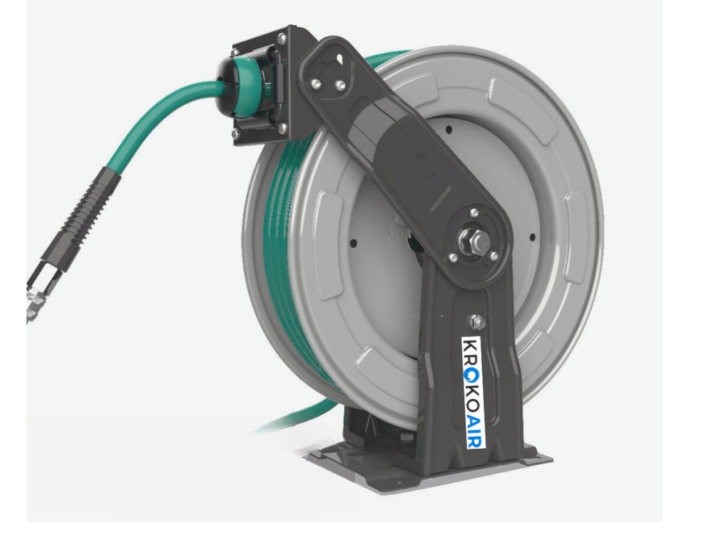 Navíjecí buben s otevřeným rámem na vzduch KrokoAir KRA PRO s hybridní polymerovou hadicí odolnou proti oleji o průměru 9,2x15,2mm a délce 20 m.