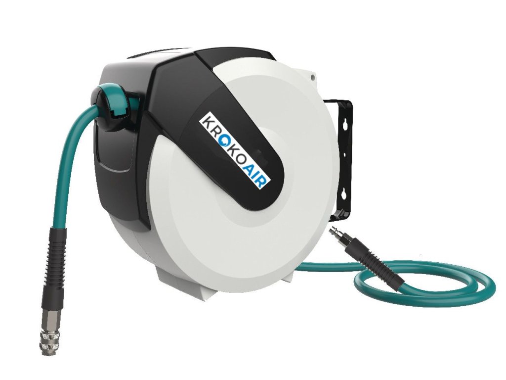 Navíjecí buben na vzduch KrokoAir KRA s hybridní polymerovou hadicí odolnou proti oleji o průměru 9x14,5mm a délce 20 m.