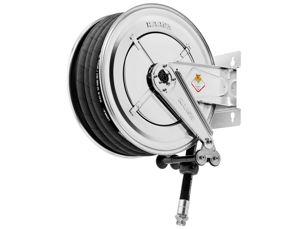 Průmyslový navíjecí buben nerezový Raasm RA.8542.102 s 3/4" hadicí o délce 20 m s maximálním tlakem 20 bar,