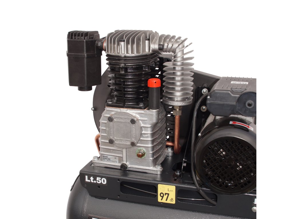 Průmyslový jednostupňový pohon: Kompresor je vybaven pohonem s klínovým řemenem, což zajišťuje velmi vysokou účinnost a klidný chod. Je ideální pro nejnáročnější podmínky v řemesle.