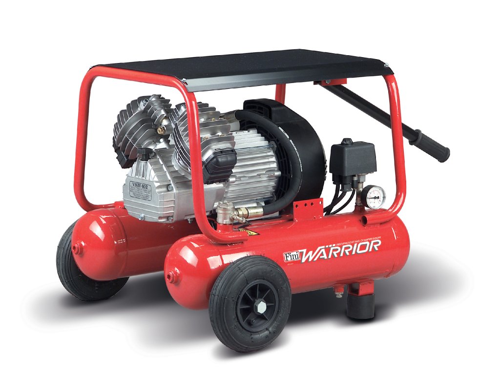 Pístový mobilní kompresor Fini Warrior 362M s robustní konstrukcí na 230V s 18l tlakovou nádobou a plnícím výkonem 240l/min. Vysoce kvalitní dvouválcová V-jednotka s nízkými otáčkami a přímým pohonem.