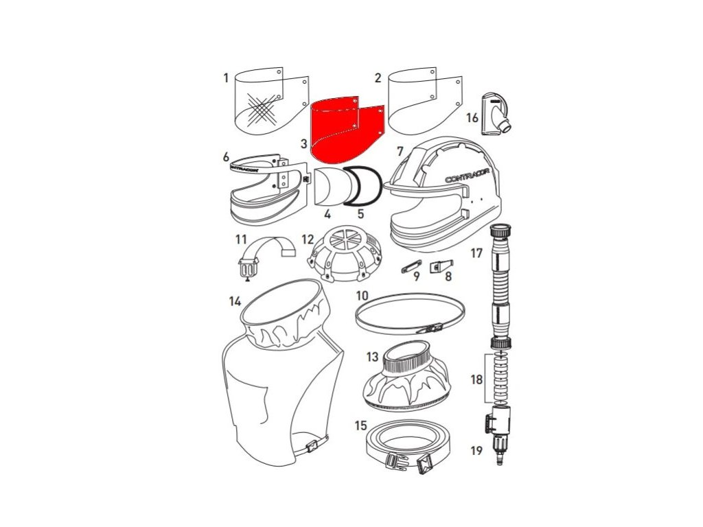 Ochranná kukla na pískování Comfort Contracor je dodávaná s hadicí pro přívod vzduchu a ochranným pláštěm kolem krku. Hmotnost pouze 2,01 kg.